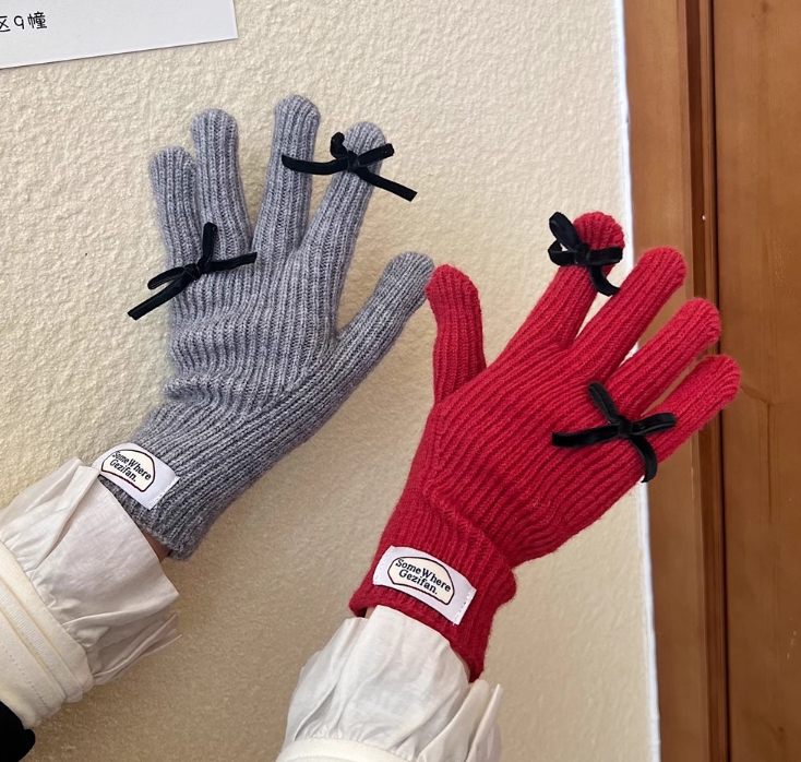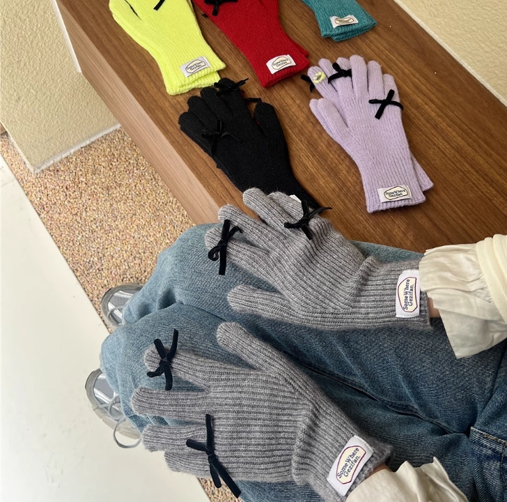小太陽可觸屏蝴蝶結分指手套-灰色